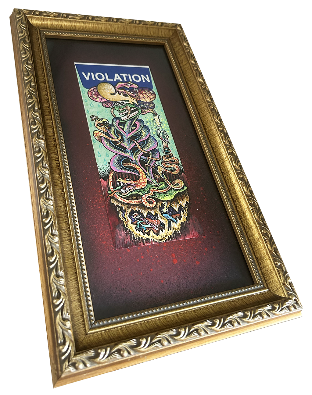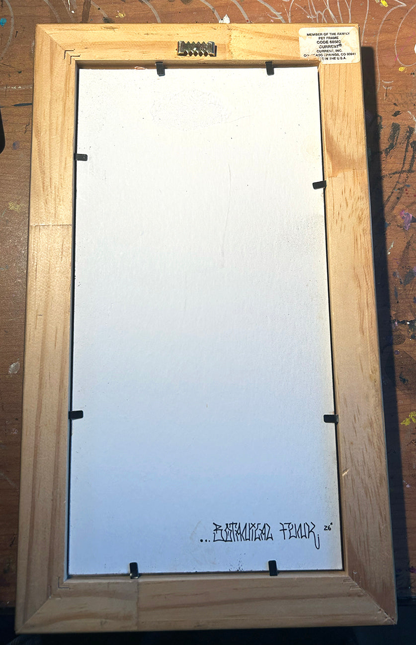 Piece comes with a  8.5x14in. recycled frame thats 1in. thick. and a custom painted matte.